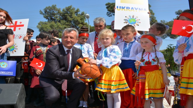 Etkinliğe katılan 8 grubun sahnede yerlerini almasının ardından saygı duruşunda bulunularak İstiklal Marşımız okundu. Yerli ve yabancı grupların temsilcilerine Menemen’e özgü toprak testi hediye eden Menemen Belediye Başkanı Tahir Şahin; Belediye Başkanı olmasının da ötesinde, Atatürkçü düşünceye sahip bir birey olarak dünya çocuklarını Menemen’de buluşturmaktan dolayı çok mutlu ve gururlu olduğunu söyledi. 23 Nisan’da Uluslarası Çocuk Şenliği düzenleme fikriyle kendisinde gelen Doğaköy İlkokulu Müdürü ve Doğa Mahalle Muhtarı’nı tebrik eden Başkan Şahin; “Çok güzel bir etkinlikte hep birlikteyiz. Bu etkinliğin gerçekleşmesine katkı sunan herkese teşekkür ediyorum” dedi.