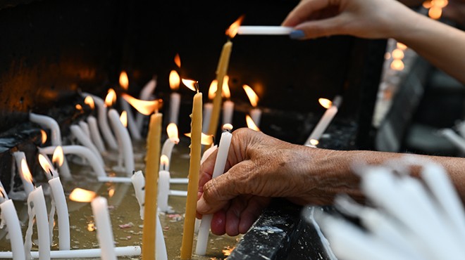 Mum yakıp dilek dileyenler, "Meryem Ana'ya Övgü Duası" etti.