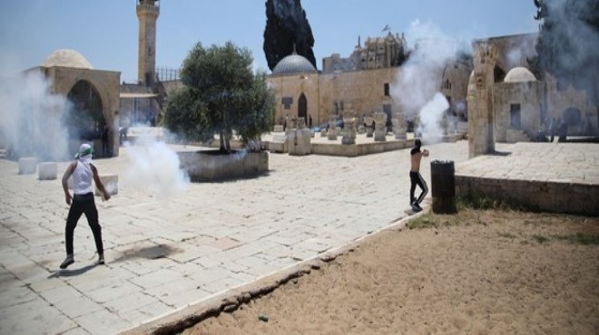 Mescid-i Aksa’nın batı kısmındaki El Meğaribe (Fas) kapısında bulunan İsrail polisleri cuma namazı çıkışında cemaate göz yaşartıcı gaz ve ses bombalarıyla müdahale etti.