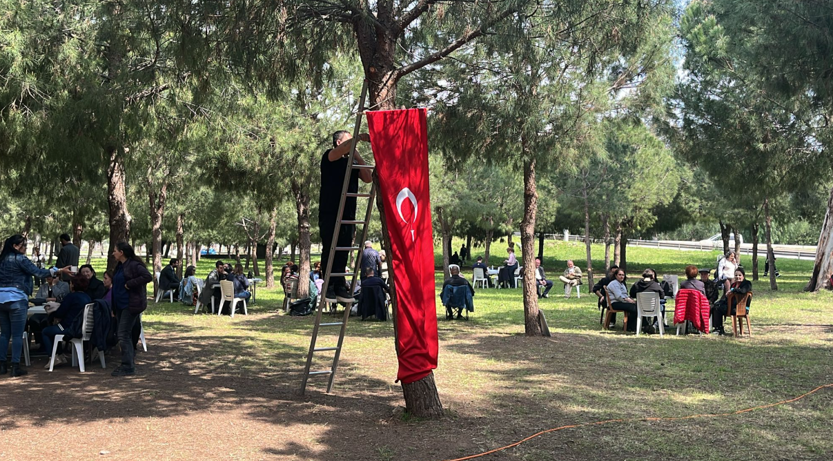 Büyük bir kalabalığın toplanması beklenen eylem öncesinde Meslek Fabrikası önünde hazırlıklar sürüyor.