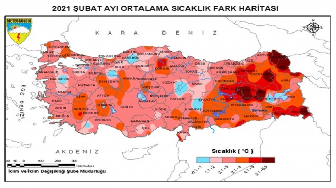 Buna göre 2021 Şubat ayında, uzun yıllar ortalamasına göre 2.8 derecelik sıcaklık artışı yaşandı. Geçen yıl 4.9 derece ölçülen şubat ayına göre ise bu yıl şubat ayındaki ortalama sıcaklık artışı 1.3 derece oldu.