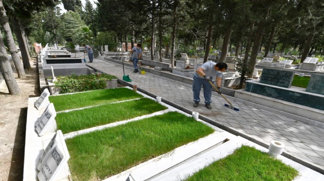 İzmir Büyükşehir Belediyesi’nin Ramazan Bayramı öncesi 7 ayrı bölgede, 300’ün üzerinde personelle 2 bin 559 mezarlıkta ilaçlama, temizlik, bakım onarım hizmetlerini sürdürdüğünü belirten Mezarlıklar Planlama Şube Müdürü Ömer Güngörmüş, "Sokağa çıkma yasağı sonrasında oluşabilecek yoğunluğu da dikkate alarak hazırlıklarımızı tamamlıyoruz. Amacımız yurttaşlarımızın huzurlu ve sorunsuz bir şekilde mezarlık ziyaretlerini yapabilmeleri. Emekçi arkadaşlarımızla birlikte elimizden gelen tüm çabayı sarf ediyoruz. Umuyoruz ki yurttaşlarımız da yaptığımız bu çalışmalardan memnun kalır" dedi. Güngörmüş, 2020 yılında mezarlıklara 4 bini ağaç olmak üzere 17 bin adet bitki diktiklerini, 2021 yılı hedeflerinin ise 25 bin bitki olduğunu söyledi.