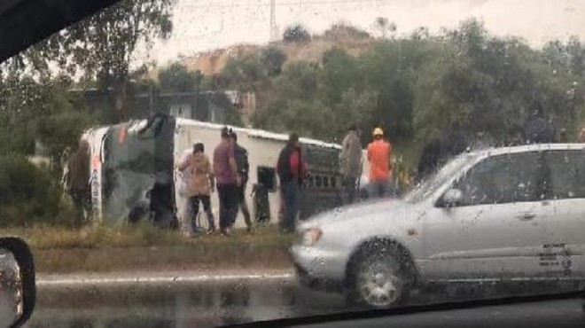 Muğla'nın Milas ilçesinde, sürücüsünün kontrolünden çıkan yolcu otobüsü, devrildi.