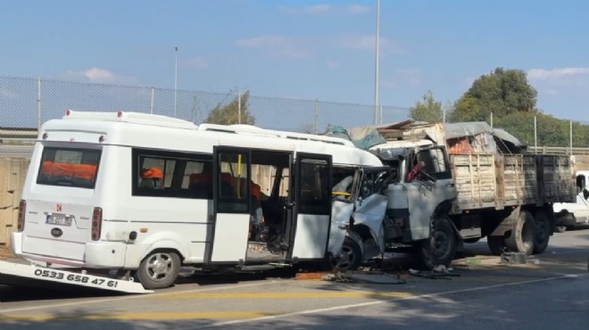 İzmir'in Narlıdere ilçesinde minibüs ile kamyonun çarpışması sonucu 2 kişi yaralandı.