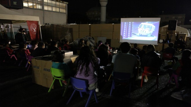 6.9 büyüklüğündeki depremin ardından aileleri ile birlikte Bornova Şehir Stadı ve Aşık Veysel Rekreasyon Alanı’nda kurulan çadır kentlere yerleştirilen çocuklar, Bornova Belediyesi’nin düzenlediği etkinliklerle zaman geçiriyor. Depremde büyük korku yaşayan miniklerin yüzleri uzman eğitmenler eşliğindeki eğlenceli oyunların yanı sıra drama, tiyatro ve müzik alanındaki atölye çalışmalarıyla gülüyor. Akşamları da kurulan dev ekranlarda çizgi film gösterimleri gerçekleştiriliyor.