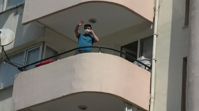 Buca'daki bir fabrikada işçi olarak çalışan evli, 1 çocuk babası Sertan Şahin, koronavirüs testinin pozitif çıkması üzerine ailesine haber verip, kendisini yaşadığı evde karantinaya aldı. 4 gündür evin içindeki bir odada karantina altında olan Şahin, eşi ve 18 aylık kızı Eylül'den uzak durarak yaşamını sürdürüyor. Minik Eylül'ün özleyip, karantinada kalan babasının kaldığı odanın önüne gelip, seslenmesi duygu dolu anlar yaşanmasına neden oluyor. Kızına olan hasretini kapı aralığından dindiren baba Sertan Şahin o anları cep telefonu ile görüntüledi.