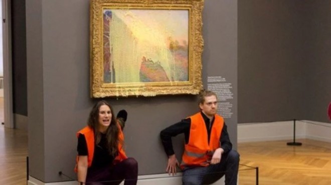 Almanya'da Letzte Generation (Son Kuşak) adlı çevreci grup üyesi iki aktivist, iklim değişikliğine dikkati çekmek amacıyla Potsdam kentindeki Barberini Müzesi'nde sergilenen Fransız ressam Claude Monet'in "Les Mueles" (Saman Yığınları) serisinde yer alan bir eserine patates püresi attı.