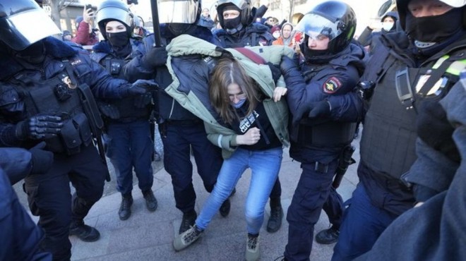 Rusya'da, başta başkent Moskova ve St.Petersburg olmak üzere çeşitli kentlerde Rusya'nın Ukrayna'ya saldırısına karşı düzenlenen izinsiz protesto gösterileri yapıldı.