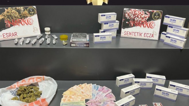 Olayla ilgili inceleme başlatan polis ekipleri, savcılık izni ile E.M.'nin evine baskın düzenledi. Adreste yapılan aramada yaklaşık 200 gram esrar, 906 adet yeşil reçeteye tabi hap, esrar öğütücü, hassas terazi ve uyuşturucu ticaretinden elde edildiği değerlendirilen 4 bin 200 TL ile 200 dolar nakit para ele geçirildi.