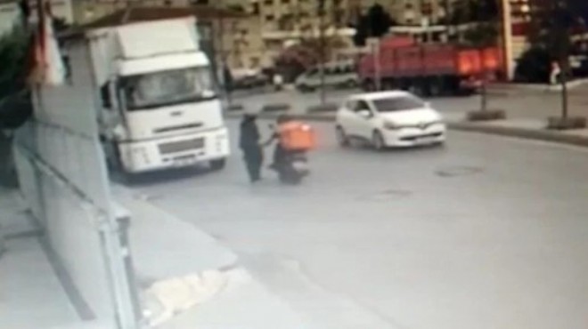 Bu sırada motosikletli kurye, uzaktan bir süre kadını izledi.