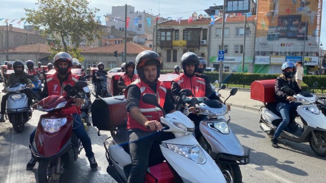 Hız baskısı nedeniyle trafikte yaşanan moto kurye ölümleri her geçen gün artarken, İzmir’de görev yapan bir grup moto kurye güvencesiz çalışma koşullarına isyan etti. Motosikletleriyle konvoy şeklinde Alsancak Gar önüne gelen moto kuryeler, “Moto kurye işçileri köle değildir” yazılı pankart açtı. “İş kazası değil bu bir cinayet” ve “Kuryeler ölmek istemiyor” sloganları atan moto kuryeler adına basın açıklamasını Servet Anlar okudu. Moto kuryeler açıklamanın ardından geçen cumartesi günü Buca’da yaşanan trafik kazasında hayatını kaybeden 22 yaşındaki kurye Okan Çakmak’ın cenazesine katılmak için alandan ayrıldı.