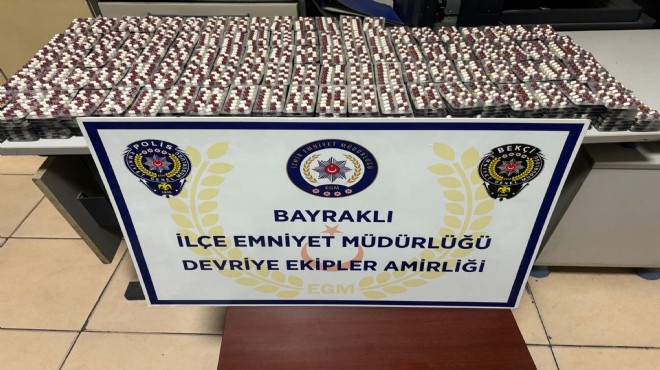 Bayraklı İlçe Emniyet Müdürlüğü Devriye Ekipler Amirliği'ne bağlı ekipler, gece saatlerinde 7399/37 Sokak'ta şüphe üzerine 35 BRC 841 ve 35 AE 4168 plakalı 2 motosikleti durdurmak istedi. Ancak iki sürücü, motosikletleri bırakıp yaya olarak kaçtı. Motosikletlerde yapılan aramada 2 ayrı siyah poşette toplam 11 bin 200 sentetik hap ele geçirildi. Polis, 35 BRC 841 plakalı motosikleti kullanan şüphelinin Suat Ö. olduğunu belirledi. Evi tespit edilen şüpheli, polis tarafından gözaltına alındı. Suat Ö.'nün polisteki işlemlerinin sürdüğü bildirildi.