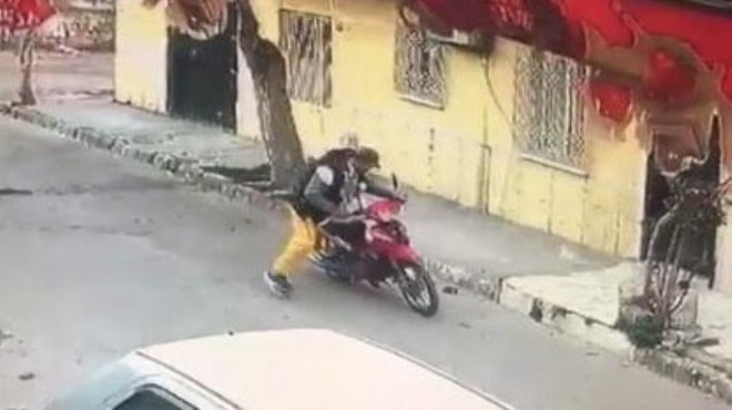 Olay, Konak ilçesi Zeytinlik Mahallesi'nde meydana geldi. Sait Karakaya, park halindeki motosikletinin çalındığını fark edince polise bildirdi. İhbar üzerine güvenlik kamerası görüntülerinden yapılan incelemede, kimliği belirsiz kişinin, motosikleti önce sürüklediği ardından kilidi kırarak uzaklaştığı belirlendi. Polis, hırsızlık şüphelisinin belirlenip, yakalanması için çalışma başlattı. (DHA)