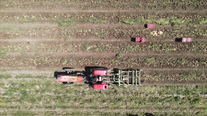 Yaklaşık bir aydır hasadı yapılan patates, tarım işçileri tarafından özenle toplanarak selelere konuluyor. Kasalanarak kamyona yüklenen patatesler, manav ve pazar tezgahlarında yerini almak üzere hallere gönderiliyor.