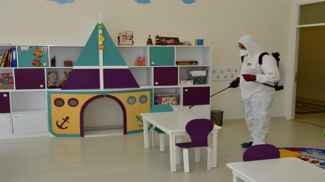 Koronavirüs salgını nedeniyle bir süredir kapalı olan Narlıdere Belediyesi’ne bağlı Nar Çiçekleri Anaokulu, normalleşme adımları kapsamında 8 Haziran Pazartesi günü eğitim öğretime yeniden başlayacak. Minik konuklarını ağırlayacak olan eğitim yuvası, belediye ekipleri tarafından dezenfekte edildi. Başkan Ali Engin “Ailelerimiz güven içinde çocuklarını bize emanet edebilirler” dedi.