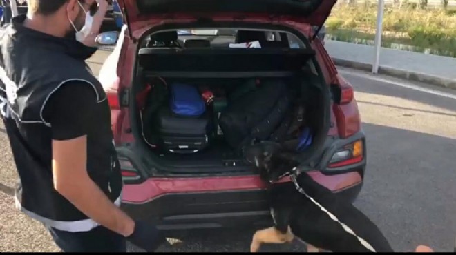 İzmir'de polis ekiplerince durdurulduktan sonra narkotik köpekleriyle arama yapılan otomobilde, 1 kilo 473 gram metamfetamin ele geçirildi.