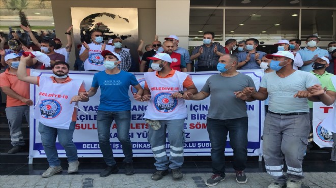 Belediye-İş İzmir 2 No'lu Şube Başkanı Metin Şanlı, belediye binası önünde yaptığı açıklamada, Nar-Bel Şirketi ile yürüttükleri toplu iş sözleşmesi görüşmeleri sürecinde, taleplerinin karşılanmadığını belirtti.