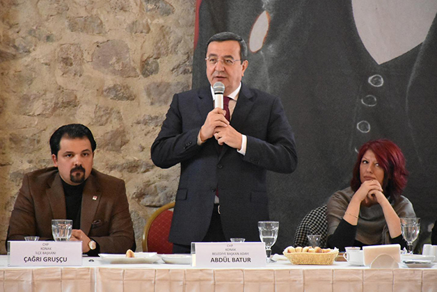 Narlıdere Belediyesi Atatürk Kültür Merkezi düğün salonunda gerçekleştirilen toplu sözleşme töreni işçilerin İstiklal marşına yöneltilen eleştirilere tepki olarak hep bir ağızdan yüksek sesle okunması ile başladı. Sözleşme töreninde bir konuşma gerçekleştiren Narlıdere Belediye Başkanı Abdül Batur, %22’ye varan iyileştirmeler oranı ve %15 sosyal paketler’de yapılan artış ile İzmir’de en iyi artışın Narlıdere Belediye emekçilerine uygulamaya çalıştıklarını ifade eden Batur, emekçilere hak ettiklerini vermenin çok önemli olduğunu ifade etti. Batur “Cumhuriyet’imizin tüm kazanımlarında olduğu gibi ulusumuzun kurtuluşunu yaşanan tüm acıları, kayıpları ve kazanımlarımızı her söylediğimizde bize hatırlatan en büyük ortak değerlerimizden biri olan İstiklal Marşı’nında toplumun genetikleri ile oynamak isteyenlerin hedefi haline geldiğini üzülerek görüyoruz. Her zaman gururla ve onurla söylediğimiz ve iftihar ettiğimiz İstiklal Marşımız böylesine bir tartışmanın içinde olmasını kabul etmiyoruz. Sanki ülkenin başka hiç bir sorunu yokmuş gibi sanki istiklal marşı sorunmuş gibi bir kamuoyu oluşturulmaya çalışılması anlaşılır bişey değildir. Hepimiz için şu anda Türkiye’nin geleceği için 2019 tarihi büyük önem taşımaktadır. Hepimizin çocuklarımızın, torunlarımızın,ülkemizin geleceği için tek yapmamız gereken inanarak, azmederek hiç durmadan çalışmak. Özellikle bugün bu salonu dolduran emekçi kardeşlerimize bir kez daha minnettarlığımı belirtmek istiyorum. İsteidğimiz kadar masaüstünde planlıyalım eğer işçi kardeşlerimiz mahallede, sokakta bunu en iyi şekilde uygulmazsa, tüm güçleriyle Narlıderemizi temiz, yeşil ve güzel bir hale getirmek için çaba göstermezse yaptıklarımızın hiç bir önemi kalmaz ve bir netice alamayız. Bu yüzden en büyük görev siz değerli emekçi kardeşlerime düşüyor. Geçmişte olduğu gibi bundan sonrada bana bu desteği vereceğimden şüphem yok ve bu yüzden toplu sözleşme ile alacağınız zamlar ananızın ak sütü gibi helal olsun. Bu yıl sadece bizi üzen adam gibi adam Ahmet Mutuoğlu olmadan bir sözleşme gerçekleştirmiş olmamız. Sözleşme görüşmeleri sırasında arkadaşlarımız için bir puan’da Ahmet Mutuoğlu için istediler tabiki onları kırmadık. Değerli emek dostu ve sendikacı Ahmet Mutuğlunu burdan bir kez daha saygıyla anıyorum” dedi.