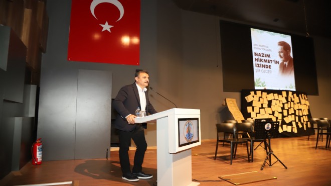 Dikili Belediyesi Tiyatro Topluluğu tarafından düzenlenen "Nazım Hikmet'in İzinde" başlıklı şiir gecesinde usta şairin memleket özlemi, tutsaklığı, yaşama sevgisi eserleri ile seslendirildi.