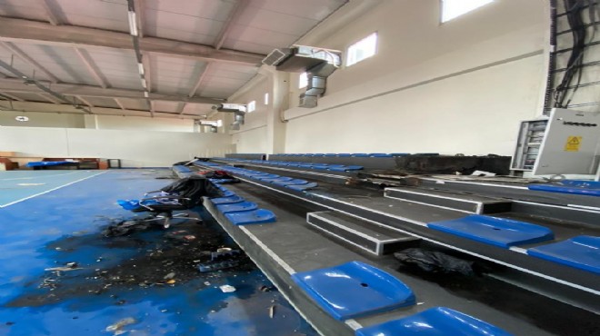 Yeni Mahalle’de bulunan ve 2014 yılında, tamamı İzmir Büyükşehir Belediyesi kaynaklarıyla Milli Emlak’tan devredilen arazi üzerine yapılıp kullanım hakları Aliağa Belediyesi’ne devredilen Çok Amaçlı Kapalı Spor Salonu’nun son durumunu görünce, binanın durumuna mı yoksa içeride gördüğümüz manzaraya mı daha çok üzülmek gerek, bilemedik.