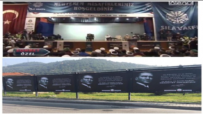 GERÇEKİZMİR - İzmir'de FETÖ operasyonları kapsamında kapatılan ve İmam Hatip Lisesi'ne çevrilen Eski Yamanlar Koleji'nde İsmailağa cemaatine bağlı Sıla Vakfı'nın düzenlediği ve Cübbeli Ahmet Hoca olarak bilinen Ahmet Mahmut Ünlü gibi isimlerin de katıldığı etkinlikte Atatürk'ün fotoğraflarının ve sporcularla ilgili sözlerinin kapatılmasının yankıları sürüyor.