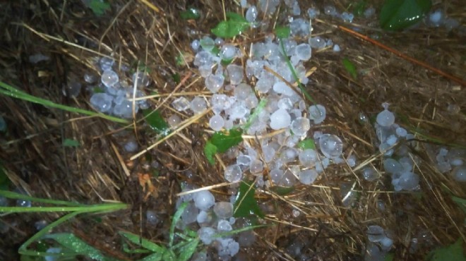 Ödemiş'te sağanak yağmur ve dolu, Konaklı Mahallesi'ndeki tarım arazilerine zarar verdi.
