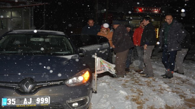 İlçeye bağlı Damlar Mahallesi'nde oturan nefes darlığı ve solunum yetmezliği hastası olan Hüseyin Songüner akşam saatlerinde rahatsızlanınca sağlık ekiplerinden yardım istendi. Sağlık ekipleri kar yağışı nedeniyle kapanan yolda bölgeye ulaşamayınca durumu yetkililere bildirdi. Durumu öğrenen Kiraz Belediye Başkanı Saliha Özçınar, harekete geçti. Bölgeye gönderilen iş makinesi ile İğdeli merkezine getirilen Songüner, Başkan Özçınar'ın makam aracına bindirilerek Kiraz Devlet Hastanesi'ne kaldırıldı.