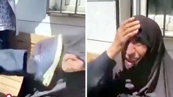 Bu sırada kalabalık arasındaki bir kişi yaşlı kadına tekme attı. Saldırı anı ve kadının gözyaşı döktüğü anlar, cep telefonu kamerasıyla görüntülendi. Sosyal medyada paylaşılan görüntüler tepki çekti.