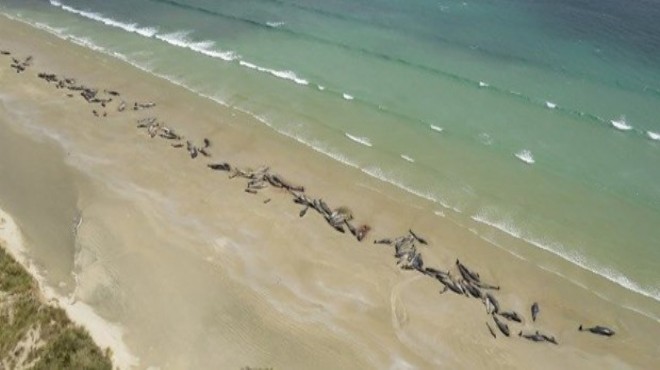 Yeni Zelanda Koruma Dairesi (DOC) tarafından yapılan açıklamaya göre, 145 pilot balina henüz bilinmeyen bir nedenle ülkenin güneyinde yer alan Rakiura/Stewart Adası sahilinde karaya oturdu.