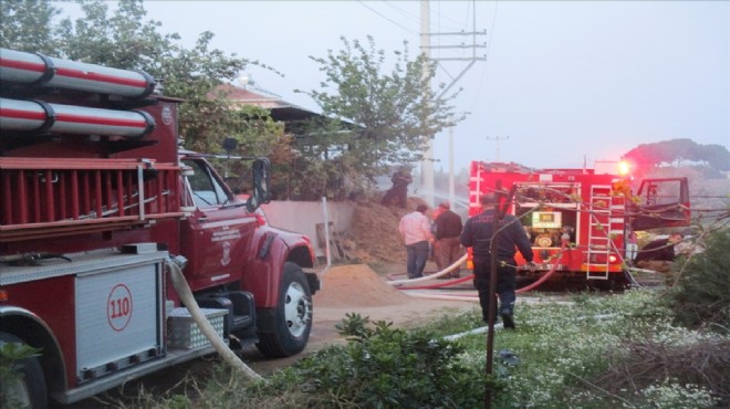 İzmir Büyükşehir Belediyesine bağlı 3 itfaiye ekibinin müdahale ettiği yangın söndürüldü. (AA)