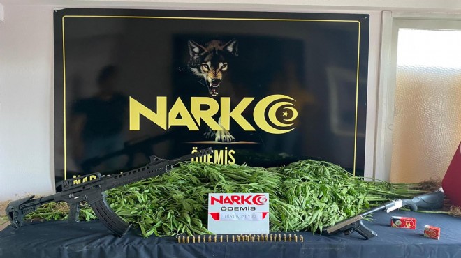 Ödemiş Narkotik Grup Amirliği ekipleri, ilçede yaptıkları çalışmalarda bir kişinin uyuşturucu ticareti yaptığı ihbarını aldı. Harekete geçen ekipler belirledikleri adrese operasyon düzenledi. Operasyonda M.S. isimli şüpheli gözaltına alınırken evinde ve tarlasında yapılan aramada 50 kök Hint keneviri, 2 av tüfeği ve 1 tabanca ele geçirildi. Gözaltına alınan şüphelinin emniyetteki işlemlerinin sürdüğü belirtildi. (DHA)