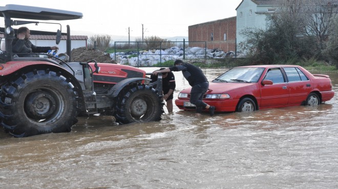 İzmir'in Ödemiş ilçesinde sabah saatlerinden itibaren etkisini gösteren sağanak nedeniyle İlkkurşun ile Yeniköy mahalleleri arasındaki İzmir-Ödemiş kara yolunda su birikintisi meydana geldi.