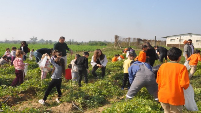 İzmir'in Ödemiş ilçesinde, Ege Üniversitesi Ödemiş Meslek Yüksekokulu bahçesinde yetiştirilen yer fıstığı anaokulu ve ilkokul öğrencilerinin katılımıyla hasat edildi.