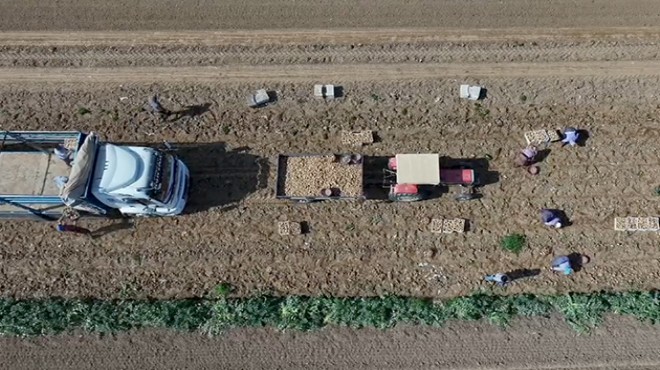 Ödemiş Ovası'nda tarlaların bir bölümünde hasat devam ederken bazılarında ise toprak sürme, gübreleme ve patates tohumu ekme işlemleri aynı anda gerçekleştiriliyor.