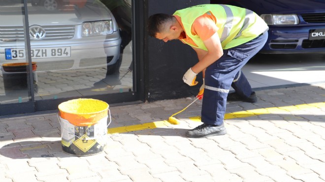 Belediye Zabıta Müdürlüğü ekipleri tarafından yapılan denetimlerde sarı çizgi dışına çıkan esnafa idari ceza uygulanacak. Uygulamayla yayaların kaldırımlarda rahat yürüyebilmesi, iş yerlerinin masa, sandalye ve satış ürünlerinin kendilerine belirtilen alanların dışına çıkmaması sağlanacak.