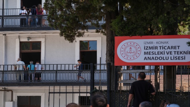 İzmir Ticaret Mesleki ve Teknik Anadolu Lisesi'nde sınava giren öğrenciler, kontrollerin ardından sınav salonuna alındı.