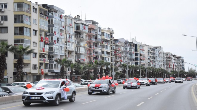 Kendilerine ait araçları Türk bayraklarıyla, balon ve süslemelerle donatan öğretmenler, İzmir sokaklarında tur attı. Tur sırasında, özel izinle dışarı çıkan öğretmenlerin konvoyuna yasak kapsamındaki vatandaşlardan katılım olmaması için, polis de eşlik etti. Karşılarında bayraklarla donatılan ve korna çalan araçları gören İzmirliler, balkonlara ve pencerelere çıkarak, el salladı. Kimi vatandaşlar bu anı ölümsüzleştirirken, kimisi de ellerine bayrak alıp, marşlara eşlik etti. Şehir Ömer Halisdemir Anaokulu önünden başlayan tur, Konak İlçe Milli Eğitim Müdürlüğü'nün önünde sona erdi.