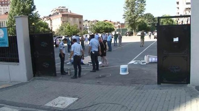 Olay Yeri İnceleme Ekipleri okul bahçesinde çalışma yaptı. Polis okulun sokağını trafiğe kapatırken, çevrede güvenlik önlemi aldı. Polisin olayla ilgili incelemesi sürerken, okul kaydı için gelen veliler geri çevrildi. (DHA)
