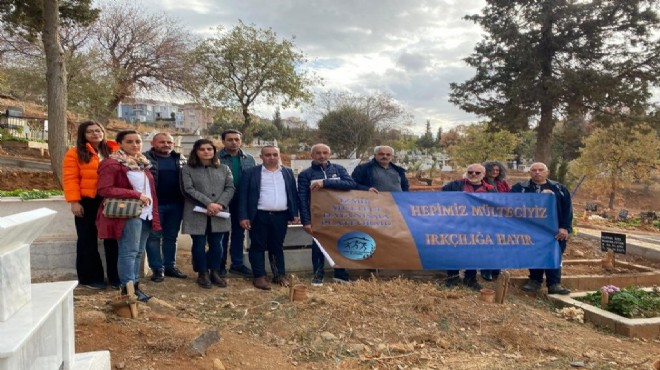 İZMİR - Yaklaşık bir yıl önce İzmir Güzelbahçe'de öldürülen Suriyeli göçmen işçiler Ahmed El Ali, Memun En Nebhan ve Muhammed El Hüseyin El Abdo El Biş mezarları başında anıldı. İzmir Mülteci Dayanışma Platformu, ırkçılığa karşı mücadele çağrısı yaptı.