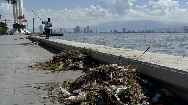 Kötü koku ve balık ölümleri nedeniyle gündemde yer alan İzmir Körfezi'nde, sabah saatlerinde Karşıyaka sahilinde atıkların kıyıya vurduğu görüldü.