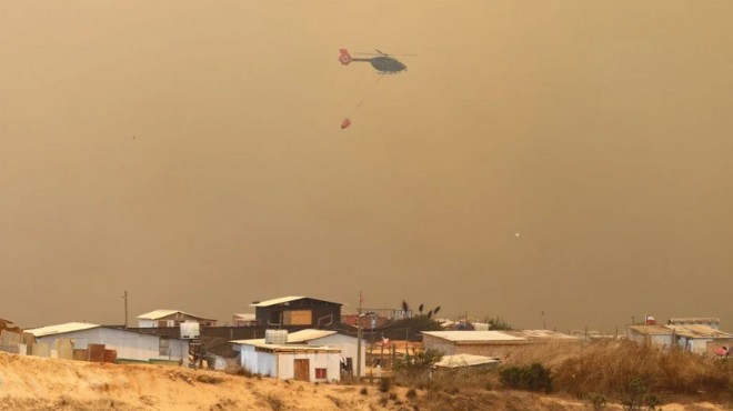 Yangınların Concon, Quintero ve Maitencillo şehirlerine doğru hızla yayıldığı bilgisi paylaşıldı.
