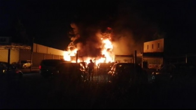 Alevler, Serkan G.'ye ait oto galerinin yanında bulunan lastik deposuna sıçradı. Çok sayıda lastik alev alırken, yangını kendi imkanıyla söndürmeye çalışan Gökhan Aygugan, dumandan etkilendi.