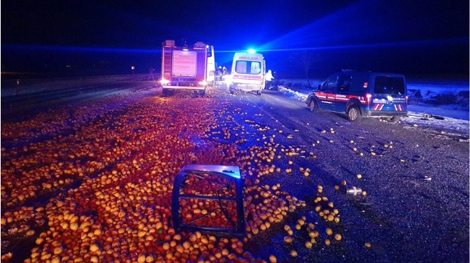 Alınan bilgiye göre, Mukadder Balkın idaresindeki 48 DG 288 plakalı otobüs, Denizli-Afyonkarahisar kara yolunda Süleyman Tuna Güngör yönetimindeki limon yüklü 66 LV 654 plakalı TIR'a çarptı.
