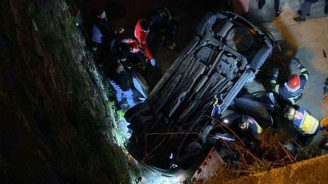 M.A. (60) yönetimindeki otomobil, sürücüsünün direksiyon kontrolünü yitirmesi sonucu çarptığı demir korkulukları aşıp, 15 metreden apartman boşluğuna düştü.