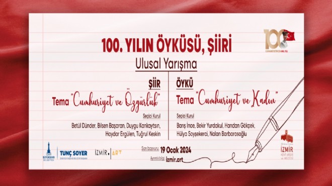 Büyükşehir Belediyesi’nin Cumhuriyet’in 100’üncü yıl dönümü kapsamında düzenlediği “100. Yılın Öyküsü, Şiiri” adlı ulusal öykü ve şiir yarışmasına başvurular başladı. Yarışma şiir kategorisinde “Cumhuriyet ve Özgürlük”, öykü kategorisinde ise “Cumhuriyet ve Kadın” temalarıyla düzenleniyor. Cumhuriyet’in kurucu kuşağının çağdaş ve aydınlık mirasını ana odağına alan ulusal katılımlı yarışma, yüz yıllık tarihi birikimin toplumsal ve kültürel izdüşümüne mercek tutmayı hedefliyor.