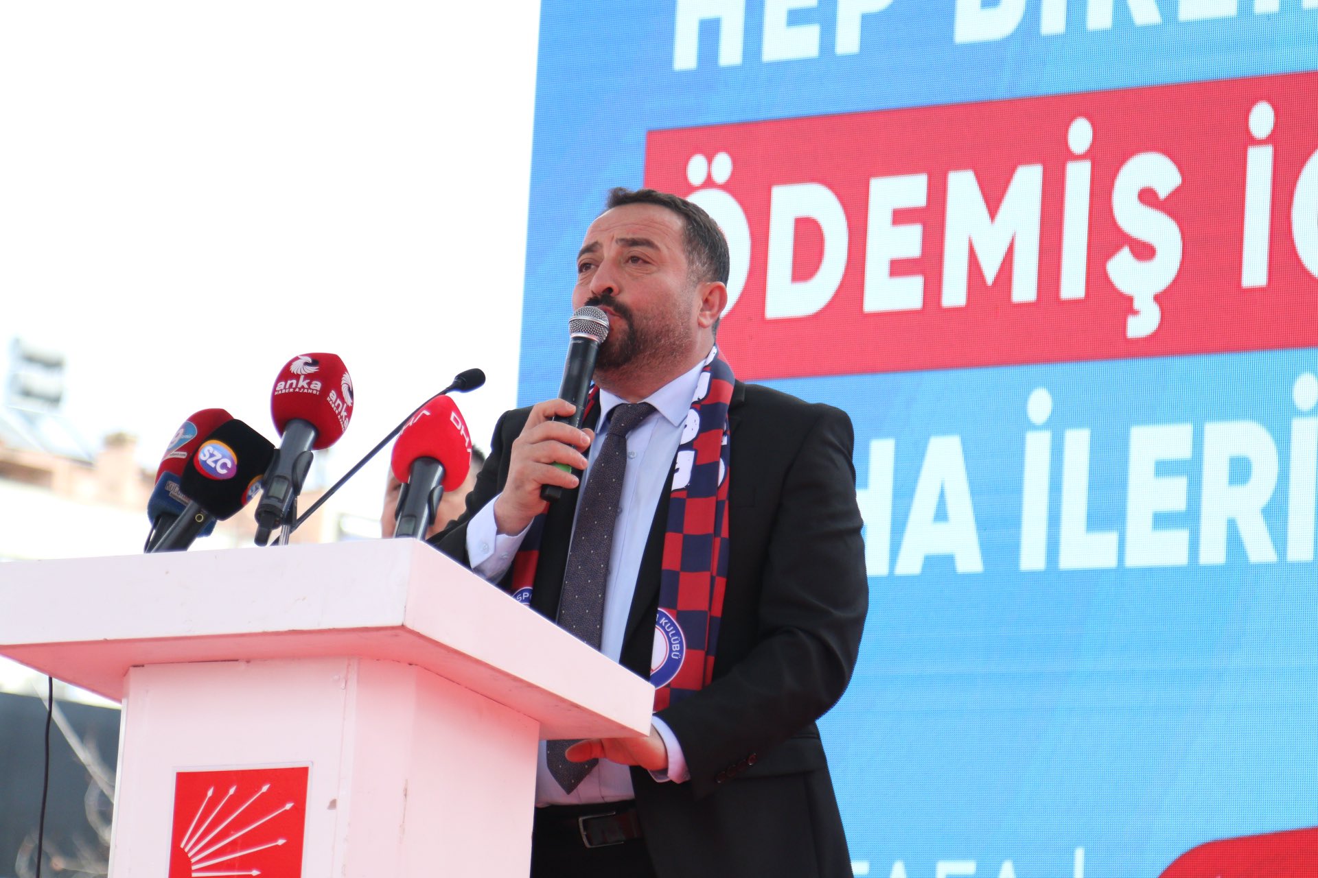 Halk buluşmasında CHP’nin Ödemiş Belediye Başkan Adayı Mustafa Turan da bir konuşma yaptı. “Bugün burada sizlerden birisi olarak bulunmanın gururunu yaşıyorum” diyen Ödemiş Belediye Başkan Adayı Turan, “Cumhuriyet demek bir zamanlar köy evinin avlusunda gelecek için hayaller kuran bir çocuğun bir gün bunları gerçekleştirmek için belediye başkanı olabilmesi demektir” mesajını verdi. Turan şunları kaydetti: Cumhuriyetin ikinci yüzyılında Ödemiş ışıl ışıl yürüsün diye bu yoldayız. Bir an bile durmayacağız, yorulmayacağız, Ödemiş’e hizmet etmekten, yenilikler sunmaktan başka hiçbir derdi olmayan meclis üyelerimle beraber yürüyeceğiz, Ödemiş 1 Nisan’dan itibaren yepyeni bir bahara uyanacak. Turan sosyal belediyecilik kapsamında vaatlerini de sıraladı. ‘Efe Kart’ sistemi ile bir Ödemiş dayanışması inşa edeceklerini söyleyen Turan, “Hiçbir çocuğun yatağa aç girmeyeceği Ödemiş için geliyoruz” diye konuştu.