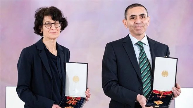 Almanya Cumhurbaşkanlığından yapılan yazılı açıklamada, Frank-Walter Steinmeier'in 250 bin euro değerindeki ödülü Berlin'de BioNTech şirketi kurucuları Uğur Şahin ve Özlem Türeci ile Christoph Huber ve Katalin Kariko'ya takdim ettiği ifade edildi.
