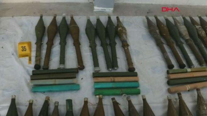 Ekipler, baskın düzenledikleri adreslerde arama yaptı. Didik didik aranan adreslerden yer altında sığınak yapılan ekiplerin dikkatini çeken boş bir arazide iş makinesiyle kazı yapıldı. Yapılan kazıda arazinin altında inşa edilen sığınakta, koli bandı ve poşetlerle sarılmış halde cephanelik ele geçirildi.