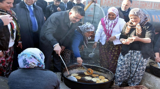 Sabah saatlerinde Karabağlar ilçesinin kırsal mahallesi Kavacık'a gelen Tarım ve Orman Bakanı Bekir Pakdemirli, kadınlarla pişi yaptı.