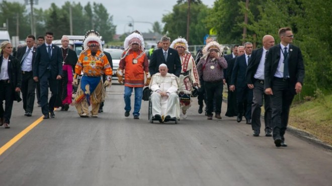 Kanada ziyaretini "tövbe haccı" olarak tanımlayan Papa, gezisinin ilk durağı olan Edmonton kentinde, yerli halkın liderleri, yatılı kilise okullarından sağ kurtulanlar ve siyasilerle halka açık bir etkinliğe katıldı.